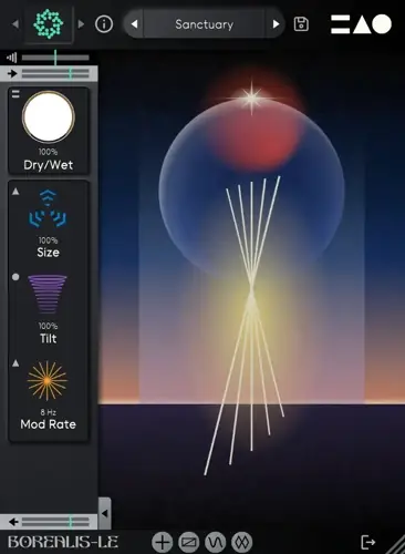 The included ‘Sanctuary’ algorithm is an imagined inner sanctum with controls for the size, frequency tilt, rate of spatial modulation, and damping. With the included deep modulation system, equalizer, and limiter, BOREALIS-LE allows you to take this algorithm into many dimensions.