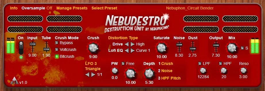 Distortion, Saturation, Bitcrusher, Voltage Quantizer, Noise Generator, Lofi, Filters, Glitch.